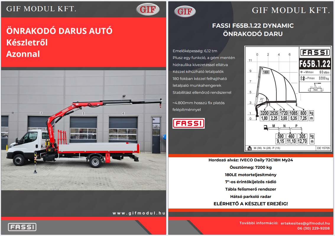 Fassi F65B.1.22 önrakodó darus autó + IVECO Daily 70C18