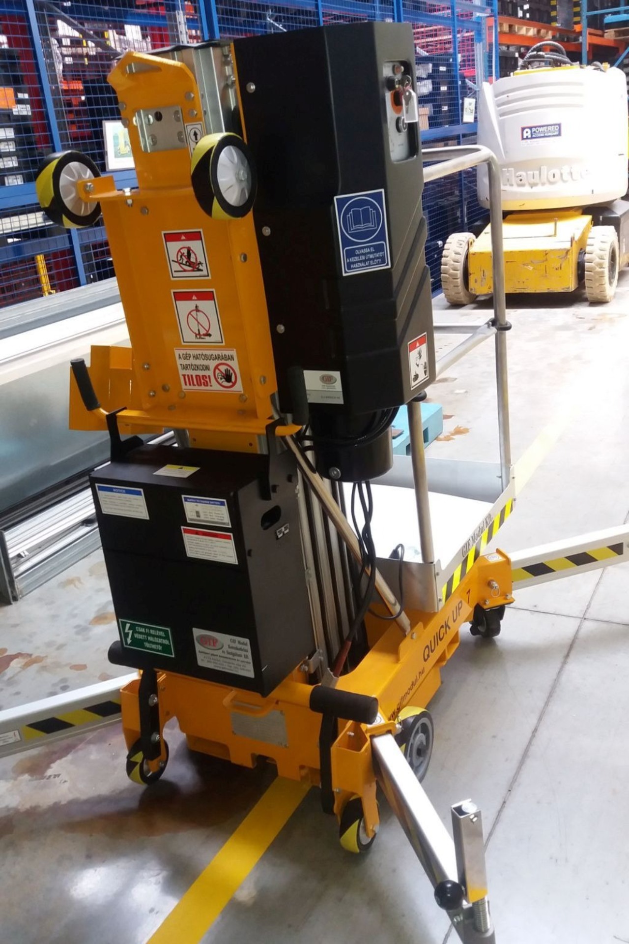 A Quick Up sorozat kézzel tolható személyemelői minden beltéri projekthez igazodnak. Könnyűek, a legsérülékenyebb talajon használhatók. Könnyen szállíthatók manuálisan, vagy vontathatók utánfutóval vagy furgonnal. Nyomot nem hagyó abroncsaik és gumis stabilizátoraik védik a padlófelületet. Kompakt méretüknek köszönhetően bejuthatnak az ajtókon, vagy elférnek liftben. A gyors beállítást egy személy is elvégezheti. Minimális karbantartást igényelnek, ár-érték arányban jók. Az emelőkarok magassága 8 és 14 méter között van.